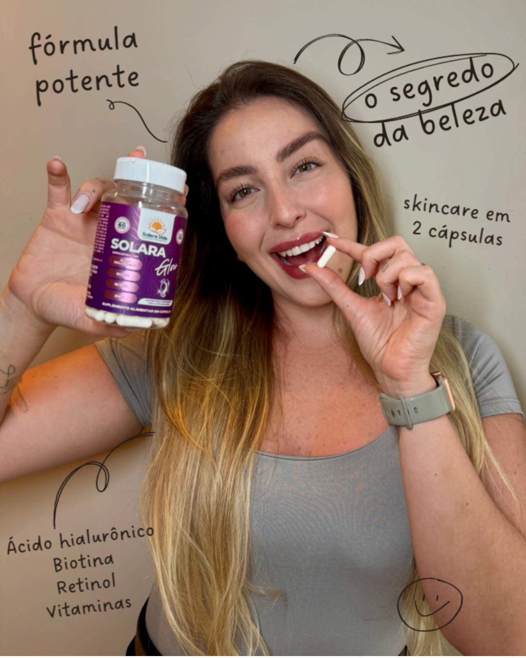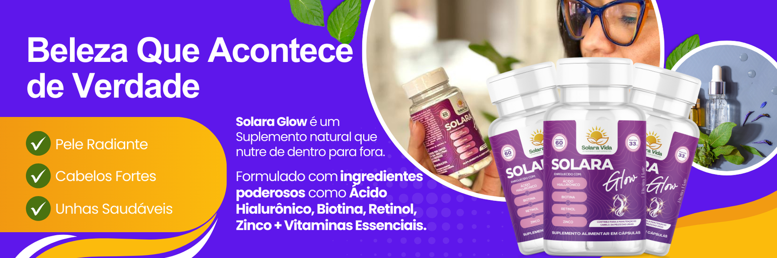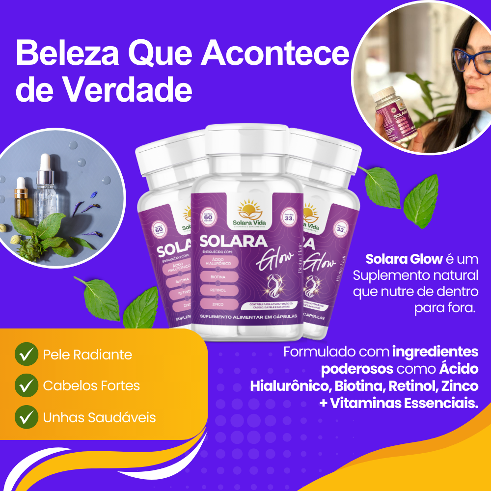 Solara Glow é um suplemento para cabelo, pele e unhas desenvolvido com ativos cientificamente utilizados para promover beleza, força e saúde de dentro para fora. Sua fórmula avançada combina Biotina,...